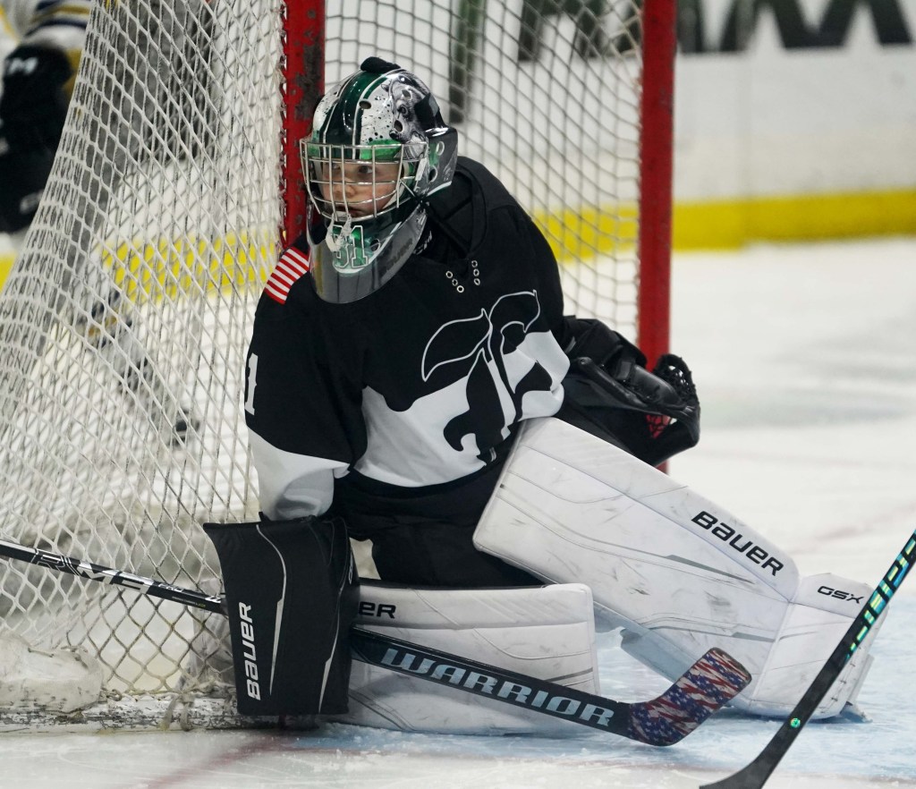 The Euguene player performed the same routine as Joaquin: He collected the puck from center ice and advanced toward goal. As he approached down the right side of the rink, Atlas shifted to his left inside the crease, opened his glove, squatted and absorbed the shot. After a few seconds, the puck, which was nestled comfortably into Atlas’ padded chest, dropped to the ice, the referee signaled a saved goal, and the game was over. Atlas then skated to the bench area as his teammates swarmed him in celebration.